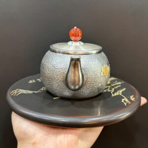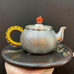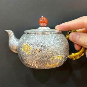 Ấm bạc pha trà 999 nguyên chất hoa sen thủ công 250ml AB85