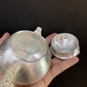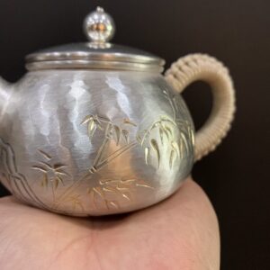 Hãy là người đầu tiên nhận xét “Ấm bạc nguyên chất 999 pha trà gò tay thủ công họa tiết trúc 220ml AB82”
