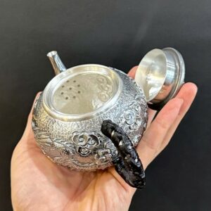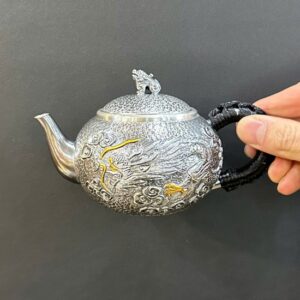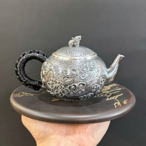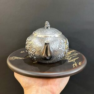 Hãy là người đầu tiên nhận xét “Ấm bạc pha trà nguyên chất 999 gò thủ công rồng 250ml AB83”