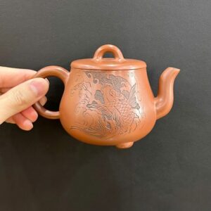 Ấm cung đăng gốm nê hưng cao cấp khắc cá vượt vũ môn 250ml AKC312