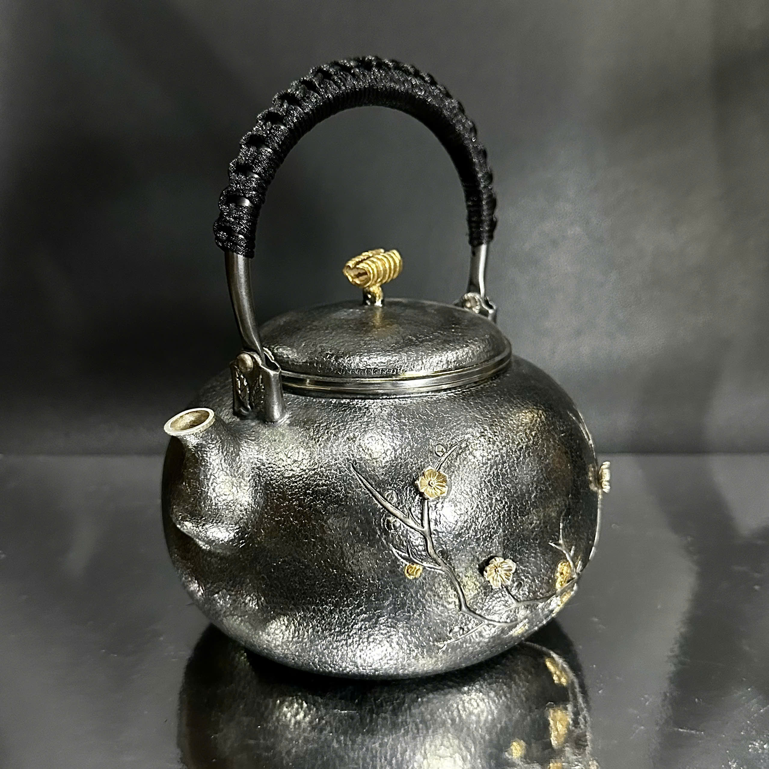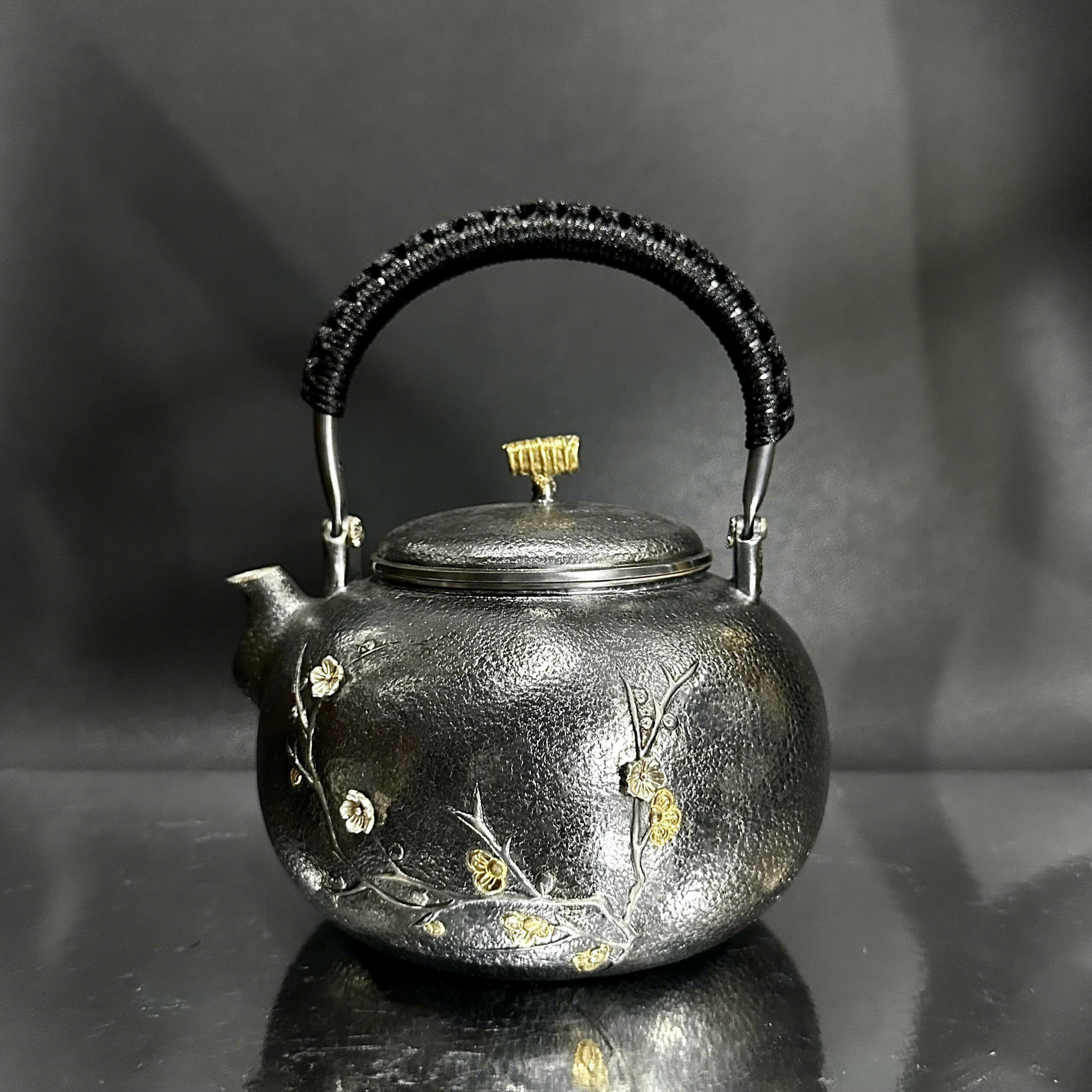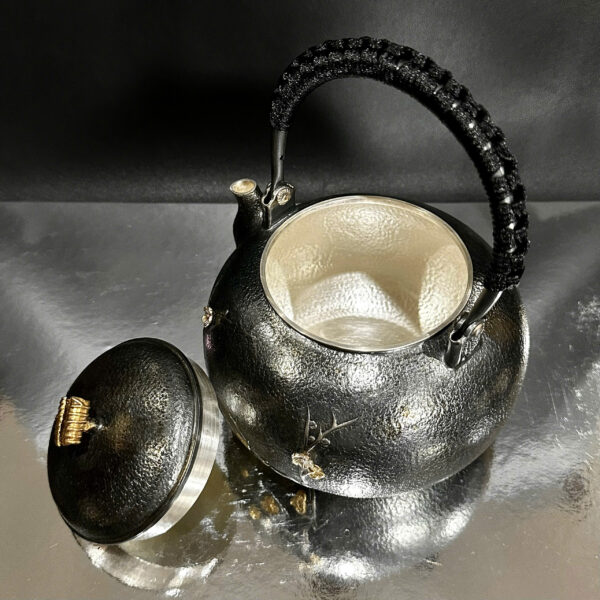 Ấm đun nước pha trà bằng bạc 999 nguyên chất hoa đào 1,1L AN84