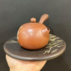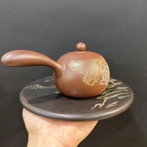 Ấm tử sa chuyết cầu hắc kim sa khắc tiểu kim đồng 240ml ATS112