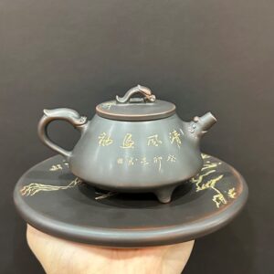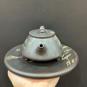 Hãy là người đầu tiên nhận xét “Ấm kiến thủy nê hưng dáng thạch biều tam túc hoạ trúc 240ml AKC267”