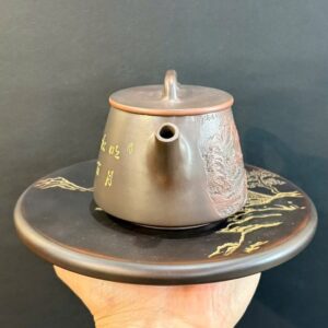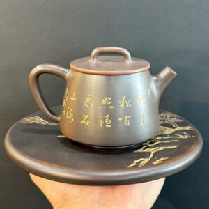 Ấm tử sa chuyết cầu hắc kim sa khắc tiểu kim đồng 240ml ATS112