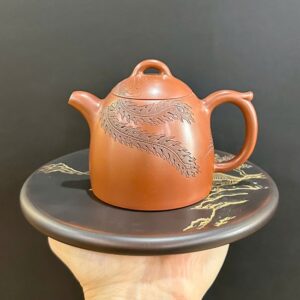 Ấm trà tử sa dáng chuông gốc tùng khắc sơn thủy hỏa biến 250ml AKC68