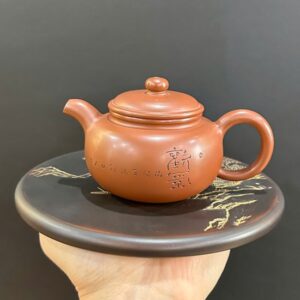 Ấm tử sa chuyết cầu hắc kim sa khắc tiểu kim đồng 240ml ATS112