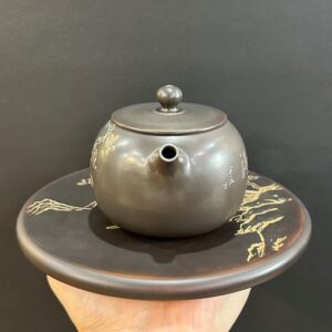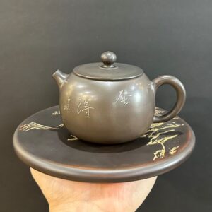 Ấm tử sa chuyết cầu hắc kim sa khắc tiểu kim đồng 240ml ATS112