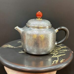 Ấm tử sa chuyết cầu hắc kim sa khắc tiểu kim đồng 240ml ATS112
