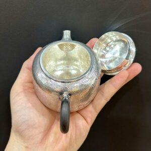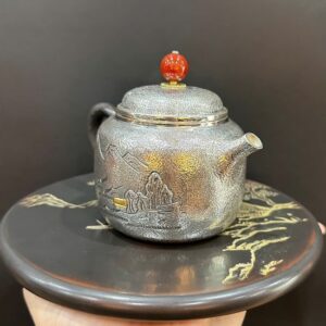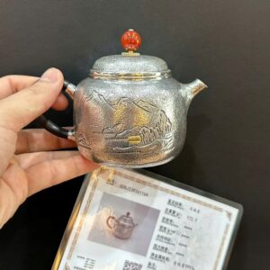 Hãy là người đầu tiên nhận xét “Ấm pha trà bạc nguyên chất ag 999 gò thủ công sơn thủy 240ml AB01”