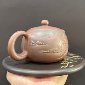 Ấm pha trà tây thi gốm tử sa nê hưng đắp nổi sơn thủy đẹp 300ml quần ẩm đông người.