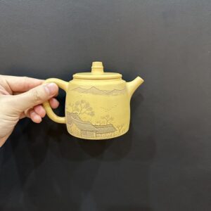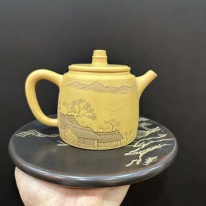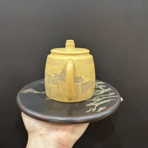 Ấm pha trà tử sa nê hưng khắc phố cổ vàng đức trung 330ml AKC207