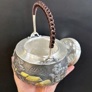 Đặt mua Ấm tetsubin bạc nguyên chất 999 đun nước pha trà gò tay 1L AN87