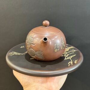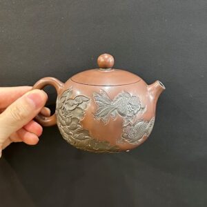 Hãy là người đầu tiên nhận xét “Ấm trà cao cấp dáng tây thi khắc hoa sen cá thủ công 240ml AKC256”