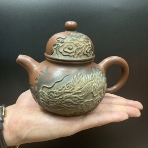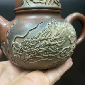 Ấm trà cao cấp khắc rồng gốm nê hưng hoả biến 350ml AKC55