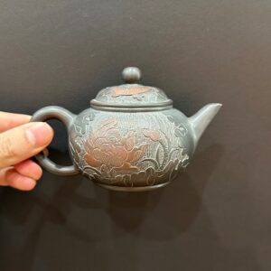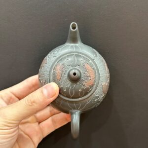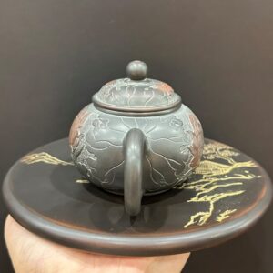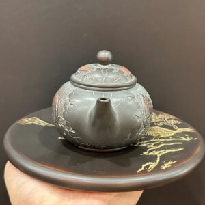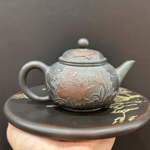 Hãy là người đầu tiên nhận xét “Ấm trà hắc sa nê hưng dáng thủy bình thủ công khắc sen cá 180ml AKC177”