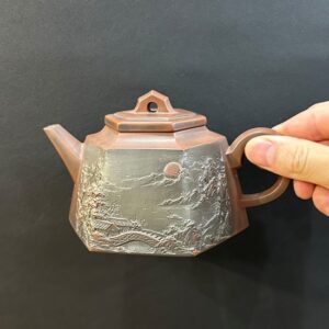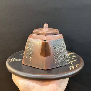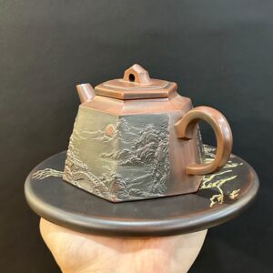 ấm trà hoả biến cao cấp dáng lục phương khắc sơn thuỷ 350ml AKC80