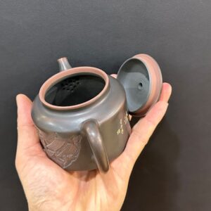 Ấm trà tử sa cao cấp pha trà ngon dáng đức trung khắc phố cổ thủ công đẹp 300ml.