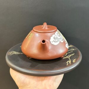 Ấm trà tử sa đất cũ Đáy Tào Thanh Cũ Thạch Biều Lục Giác Sơn Thuỷ 3 Chiều ATS296
