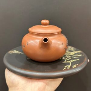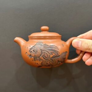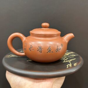 Ấm trà tử sa nê hưng biển phúc khắc song ngư chữ đề thiền trà nhất vị 250ml.