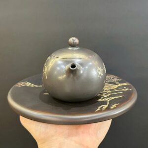Ấm trà tử sa dáng chuông gốc tùng khắc sơn thủy hỏa biến 250ml AKC68