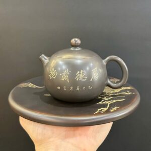 Ấm trà tử sa đất cũ Đáy Tào Thanh Cũ Thạch Biều Lục Giác Sơn Thuỷ 3 Chiều ATS296