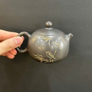 Ấm tử sa nguyên khoáng đất cũ dáng tiêu anh khắc trúc 260ml ATS301