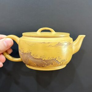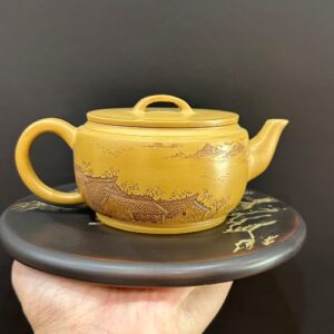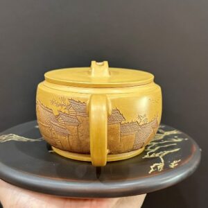 Ấm trà tử sa nê hưng cao cấp khắc phố cổ thủ công 250ml đẹp AKC208
