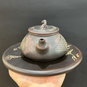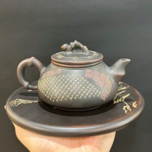 Ấm tử sa nguyên khoáng đất cũ dáng tiêu anh khắc trúc 260ml ATS301