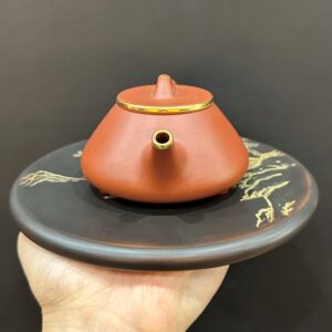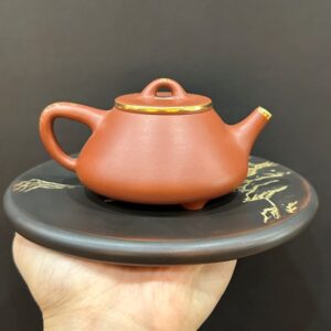 ấm tử sa thạch biều cao cấp trung quốc đại hồng bào thủ công viền vàng đẹp 180ml.