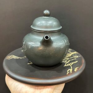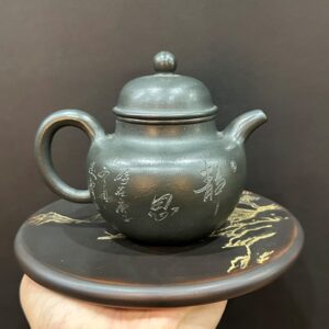 Hãy là người đầu tiên nhận xét “Ấm tử sa chuyết cầu hắc kim sa khắc tiểu kim đồng 240ml ATS112”
