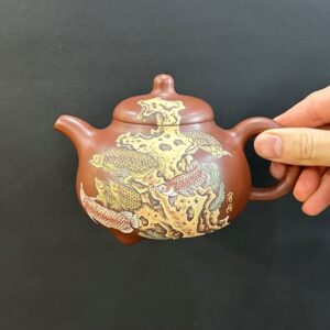 Ấm tử sa cổ cung đình Thanh đắp nổi cá vàng cao cấp 500ml ATS604