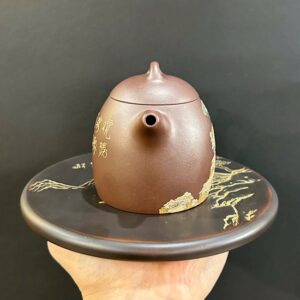 Ấm tây thi tử sa nê hưng cao cấp thủ công hoạ tiết vàng đẹp 220ml AKC224