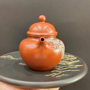 Ấm tử sa nguyên khoáng đất cũ dáng tiêu anh khắc trúc 260ml ATS301