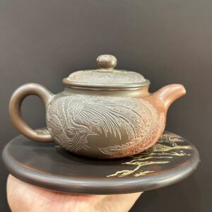 Ấm tử sa nê hưng cao cấp hoả biến khắc long phụng xum vầy cực đỉnh 310ml đẹp.