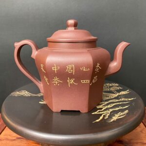 Ấm trà tử sa đất cũ Đáy Tào Thanh Cũ Thạch Biều Lục Giác Sơn Thuỷ 3 Chiều ATS296