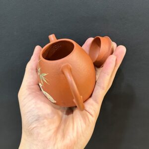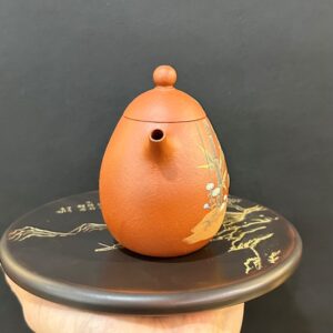 Ấm tử sa nguyên khoáng đất cũ dáng tiêu anh khắc trúc 260ml ATS301