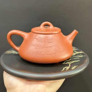 Ấm tử sa Thạch Biều khắc hoa mai đại hồng bào nghi hưng 240ml ATS25