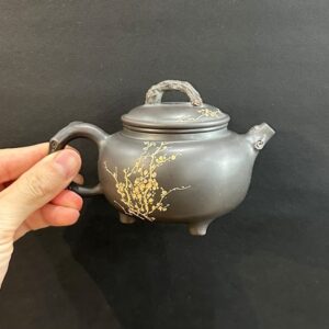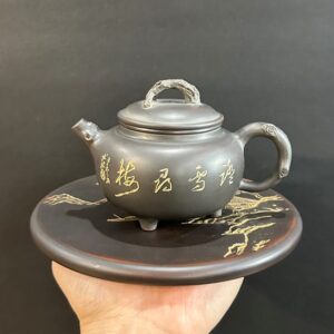Ấm tử sa nê hưng dáng tam túc khắc mai thủ công 230ml AKC236