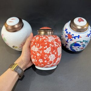 Hãy là người đầu tiên nhận xét “Bình đựng trà sứ cảnh đức vẽ tay thủ công nắp xoáy kín 2 nắp 800ml HT57”