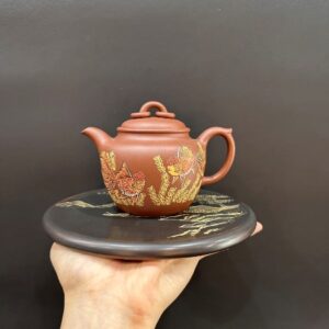 Ấm văn đán tử sa nê hưng khắc sen cá thủ công nhỏ 120ml AKC222