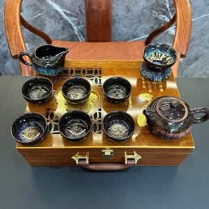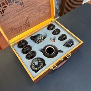 Hãy là người đầu tiên nhận xét “Bộ ấm chén đẹp gốm thiên mục dáng tây thi cao cấp AT07”