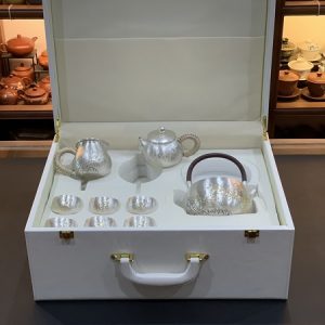 Hãy là người đầu tiên nhận xét “Bộ ấm pha trà bạc nguyên chất 999 gò tay thủ công họa tiết trúc AB82”