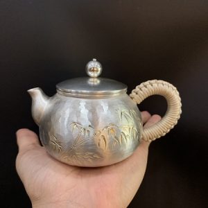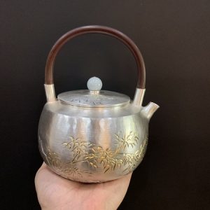 Ấm bạc đun nước pha trà nguyên chất 999 tetsubin khắc trúc AN89