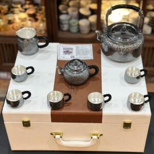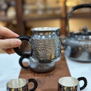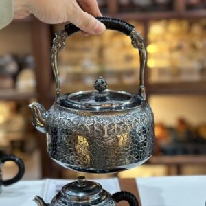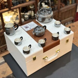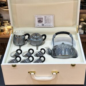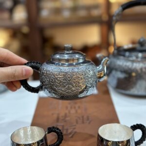 Hãy là người đầu tiên nhận xét “Bộ ấm pha trà bạc nguyên chất 999 gò tay thủ công cảnh băng tan AB81”