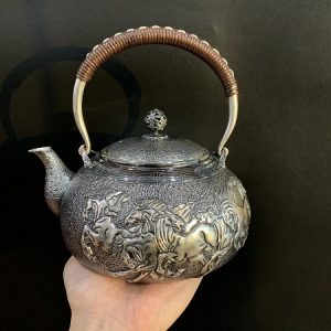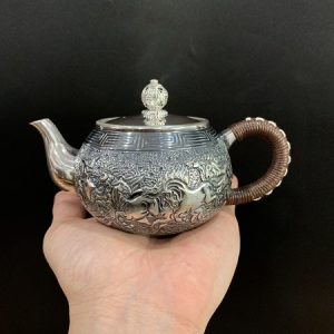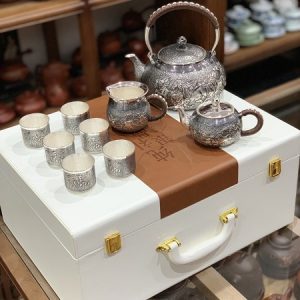 Hãy là người đầu tiên nhận xét “Bộ ấm trà bạc nguyên chất 999 cao cấp gò thủ công bát mã cực đẹp AB88”