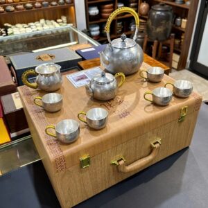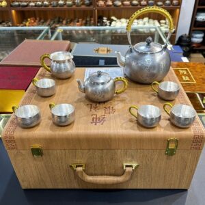 Hãy là người đầu tiên nhận xét “Bộ ấm trà bằng bạc nguyên chất 999 gò tay thủ công trúc đẹp AB89”