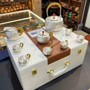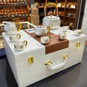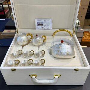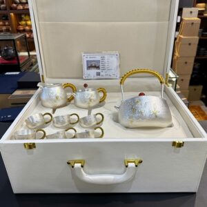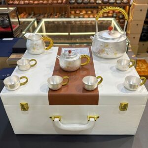 Bộ ấm trà bằng bạc nguyên chất 999 pha trà ngon hoa đào vàng 1248g AB93