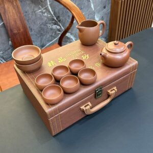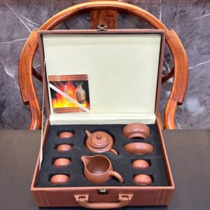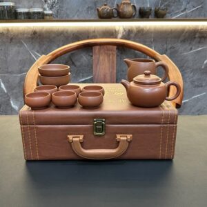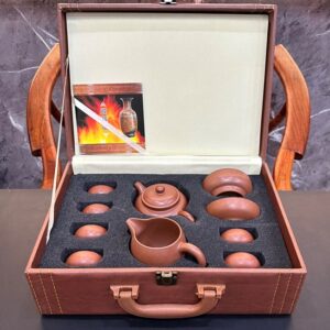 Hãy là người đầu tiên nhận xét “Bộ ấm trà tử sa cao cấp nê hưng dáng biển phúc hộp da cao cấp AT70”