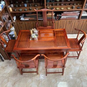 Đặt mua Bộ bàn ghế uống trà gỗ hương lào 5 ghế 1m2 đẹp pha trà tiện lợi BT34
