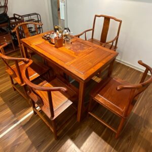 Bộ bàn ghế uống trà kiểu trung quốc gỗ hương lào 1m2 làm trà thất cỡ nhỏ đẹp.